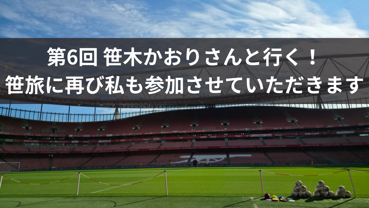 笹旅さんについて簡単に説明しますと、過去5回開催された実績がある、アーセナルの試合を笹木かおりさんと観戦するツアーとなっていて、前回は2025年1月11日(土)から1月17日(金)までの1週間、そして観戦した試合は、2025年1月14日(火)にエミレーツスタジアムで開催したアーセナルとトッテナム・ホットスパーの一戦でした。ちなみにアーセナルの勝利。